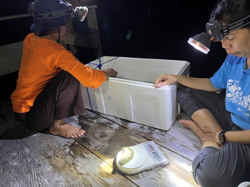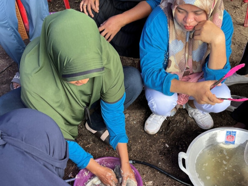 In the sustainable sandfish farming programme in Selayar Islands, female participants receive training covering knowledge and skills of sandfish farming, especially in the growth stage where sandfish are raised in sea pens until they reach harvestable size. Sea pen nets should be cleaned regularly to ensure that water flows in and out of the sea pen smoothly, bringing nutrients needed by sandfish so that sea cucumbers can grow well. These women are involved in maintaining the cleanliness of the sea pens and monitoring the growth of sea cucumbers, harvesting, and post-harvest processing. Female participants take part in sea cucumber processing training which aims to ensure that the sea cucumbers produced meet export quality. By providing these training programmes, the development of a locally sustainable sea cucumber aquaculture in seagrass habitats centred on female economic empowerment will provide a stable, high-value supplementary income to the coastal communities.