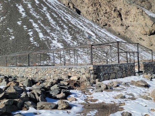 Constructed with iron poles anchored approximately 3 m apart, reinforced with galvanised iron wires, and fitted with angled roofing, these corrals are strategically placed in summer pastures where predation is most frequent. Each corral measures approximately 9 m by 18 m, providing a safe space for 900 livestock in each corral. The sites for these corrals were selected in consultation with local communities, ensuring they meet specific needs and replace conventional corrals which are prone to attacks by the large carnivores.