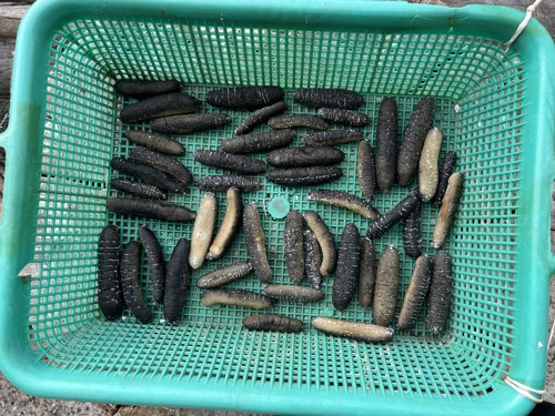 Sandfish are raised naturally in cages without supplemental feeding for approximately eight months. They generally reach reproductive maturity at 150 g and the harvestable size can start from 200 - 300 g. Therefore, the duration of natural rearing also boosts the natural reproduction of this species.