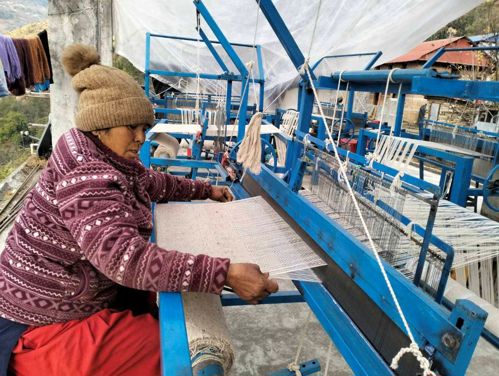 Participants of the training winding Allo threads into skeins, in GCA, Alampu. Credit - Yangti Sherpa / National Trust for Nature Conservation - Gaurishankar Conservation Area Project (NTNC-GCAP).